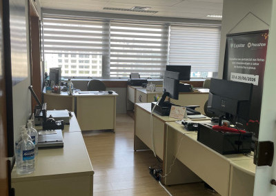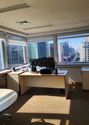 laje comercial mobiliada com 3 vagas, adequada para escritórios, consultórios, coworkings, entre outros segmentos comerciais, planta ampla, vista panorâmica, de 180 graus para a Av.Paulista, ar condicionado central, e 4 banheiros.
