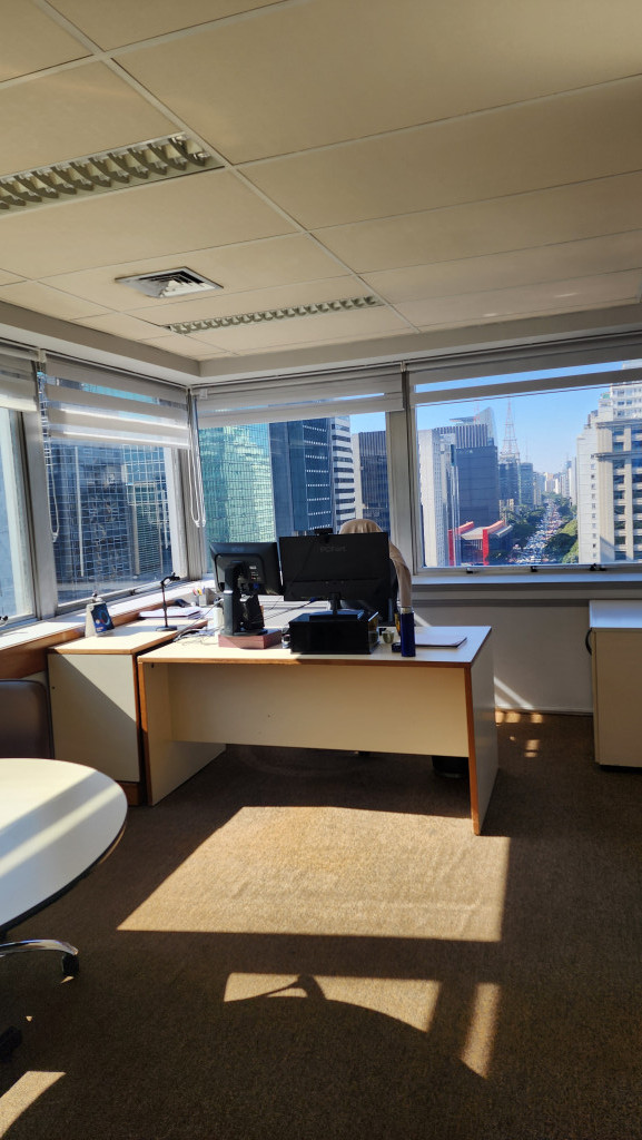 laje comercial com 1 vaga, excelente iluminação natural, ideal para empresas que buscam visibilidade, conforto e acessibilidade, estrutura versátil, adequada para escritórios, consultórios, coworkings, entre outros segmentos comerciais, planta ampla, vista panorâmica, de 180 graus para a Av.Paulista, ar condicionado central, e 2 banheiros.
