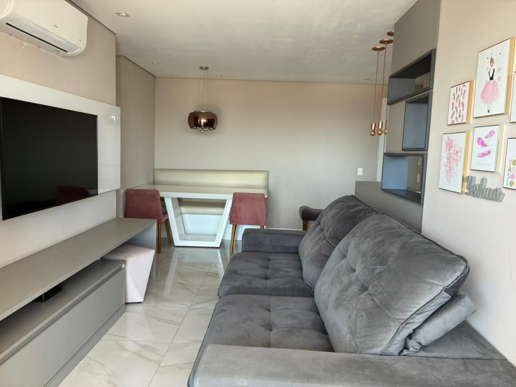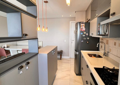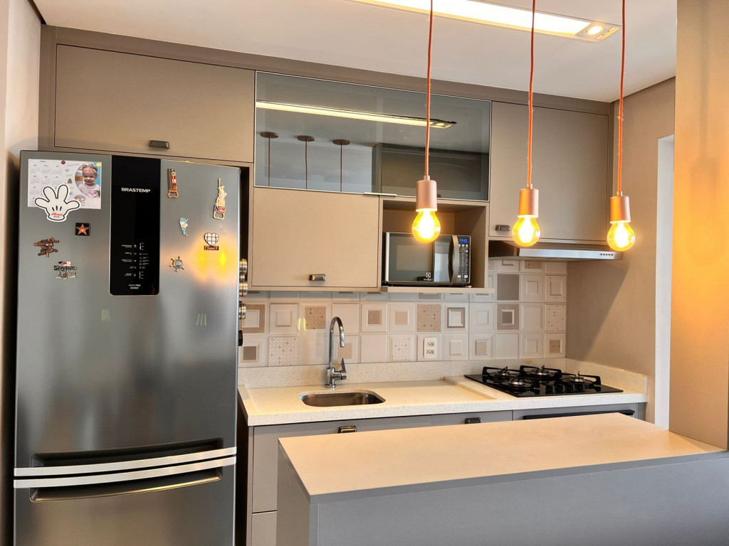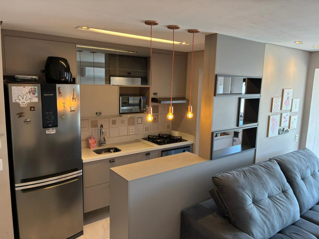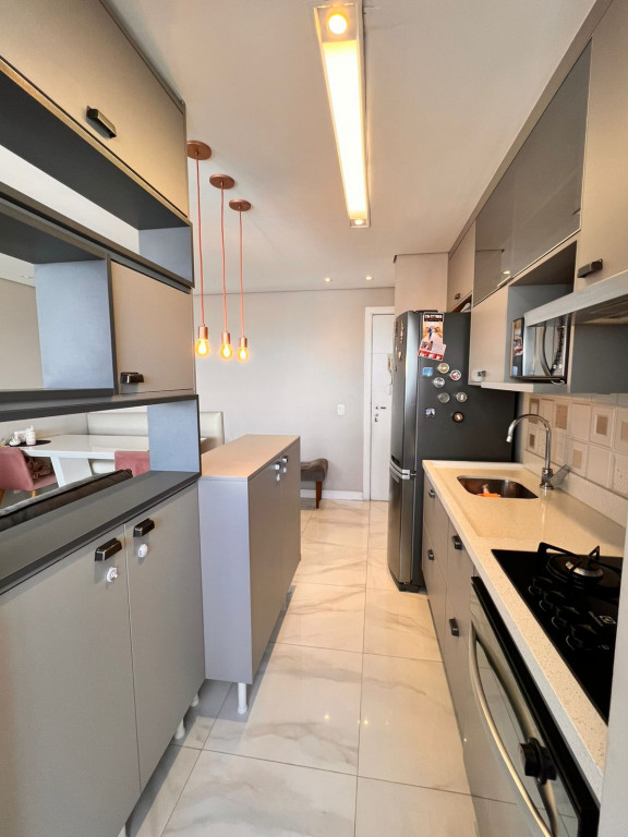 São 65 m² com 2 dormitórios sendo 1 suíte, sala com 2 ambientes e varanda, cozinha, área de serviço e 1 vagas de garagem.
