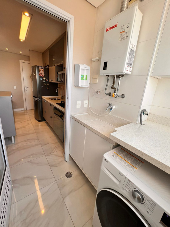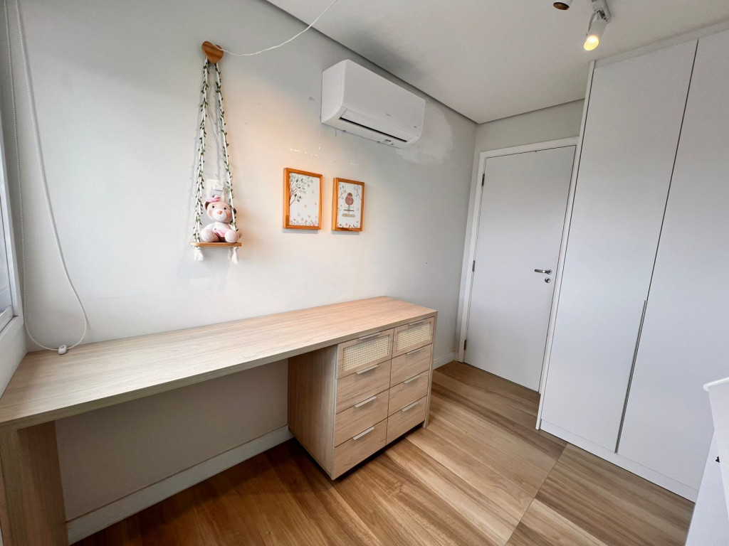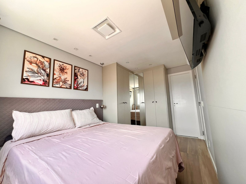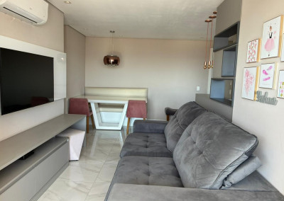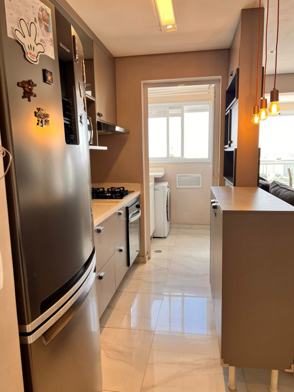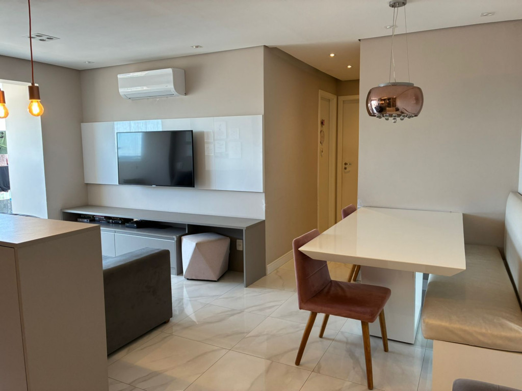 São 65 m² com 2 dormitórios sendo 1 suíte, sala com 2 ambientes e varanda, cozinha, área de serviço e 1 vagas de garagem.