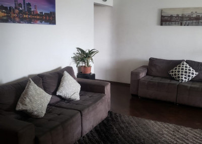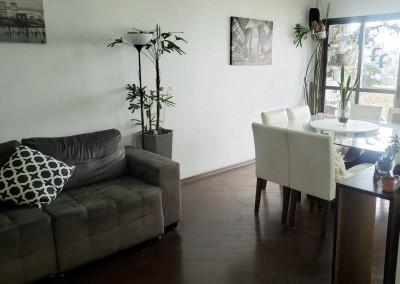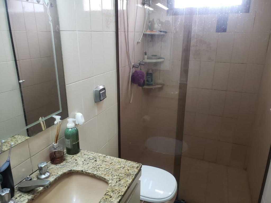 São 98 M² de área útil, com 3 quartos, sendo uma suíte, 2 banheiros, sala 2 ambientes, sacada, cozinha, área de serviço, e 2 vagas de garagem, apartamento com piso em madeira, box de vidro, piso dos quartos em mármore.