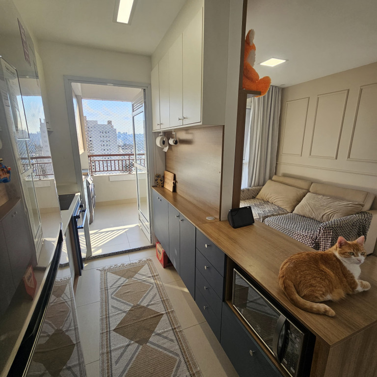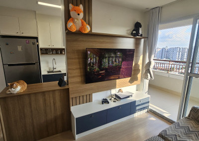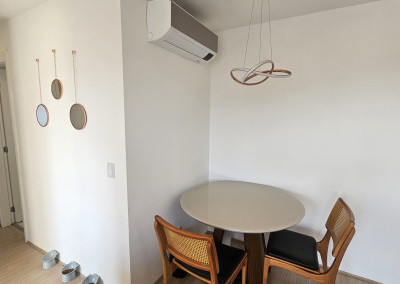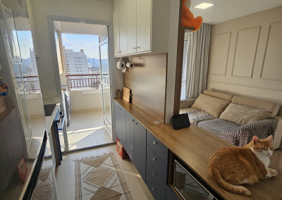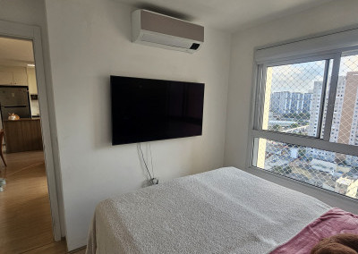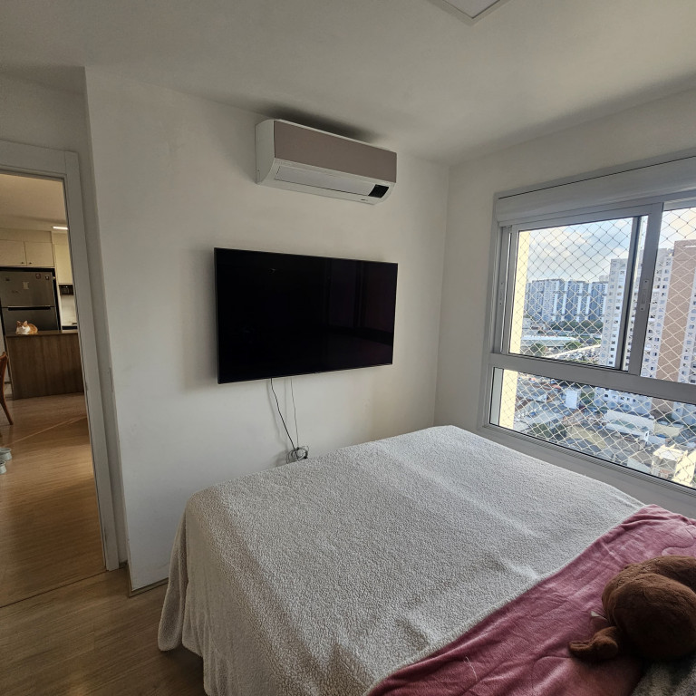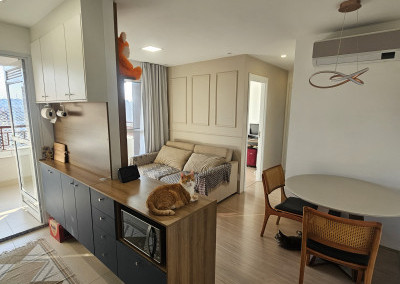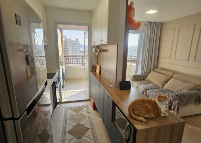 Lindo apartamento de 54m² recém-entregue na Mooca, móveis planejados novos na cozinha, na sala e na lavanderia, Pedra da cozinha em Quartzo Branco com cooktop por indução e forno elétrico da marca Electrolux, Ar condicionado Samsung Windfree Connect na sala e no quarto, apartamento totalmente automatizado com interruptores inteligentes e controle de climatização por Alexa.