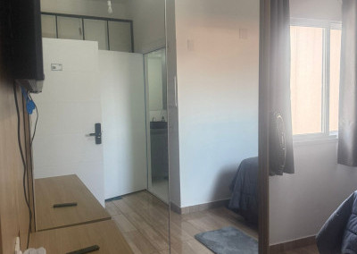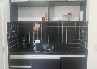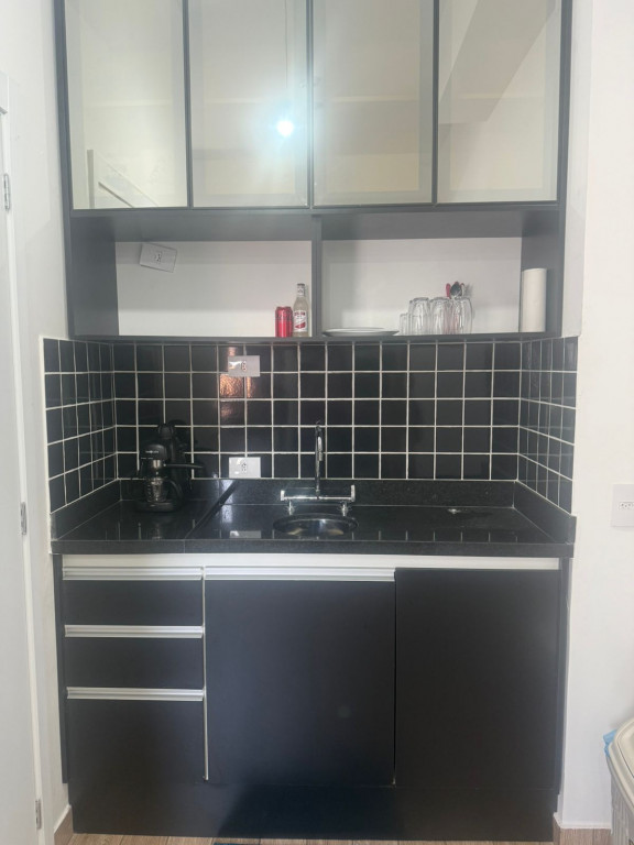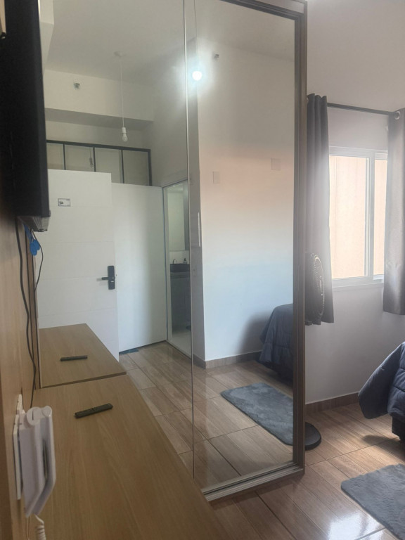 Apartamento Studio pronto para morar, mobiliado, geladeira, fogão, micro-ondas, moveis planejados, maquina de lavar, cama box, sofá de 2 lugares, mesa dobrável, aquecimento central, box de vidro e lavanderia.