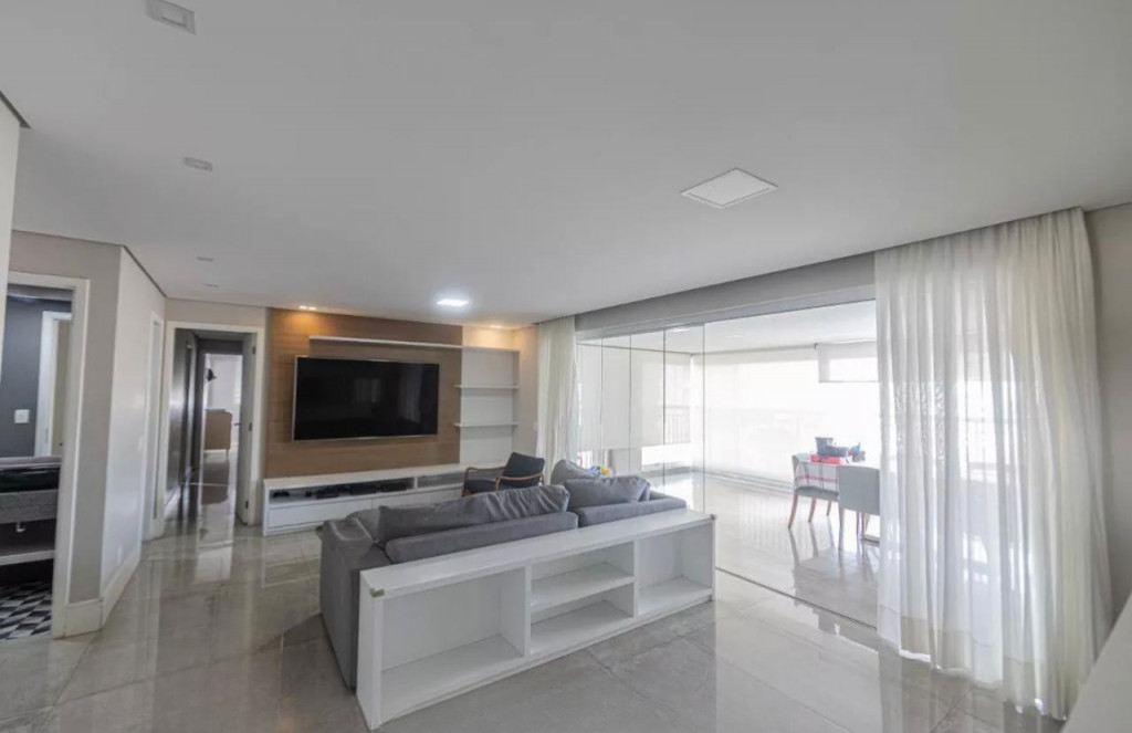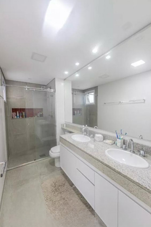 São 181 M² de área útil, com 4 quartos sendo 2 suítes, 5 banheiros, sala 2 ambientes, sacada envidraçada, cozinha, área de serviço, e 3 vagas de garagem.