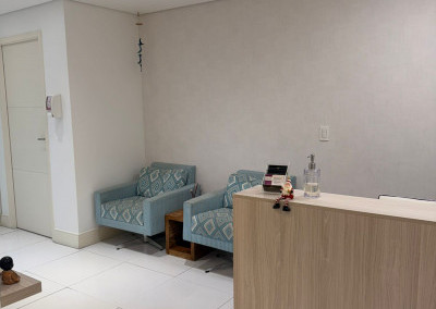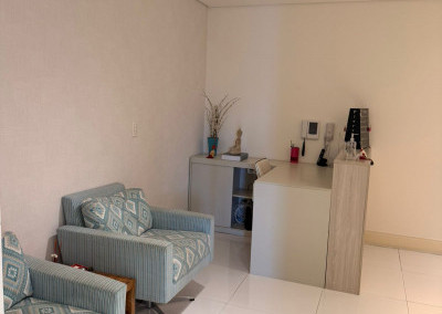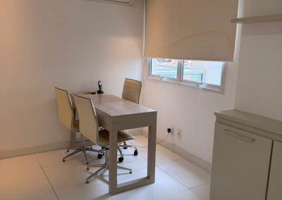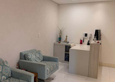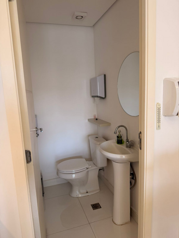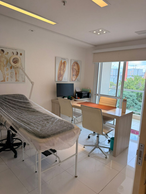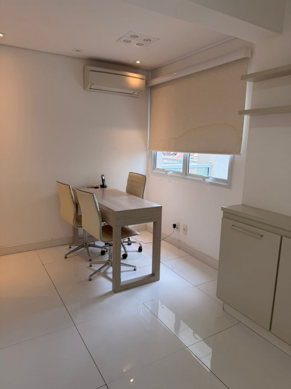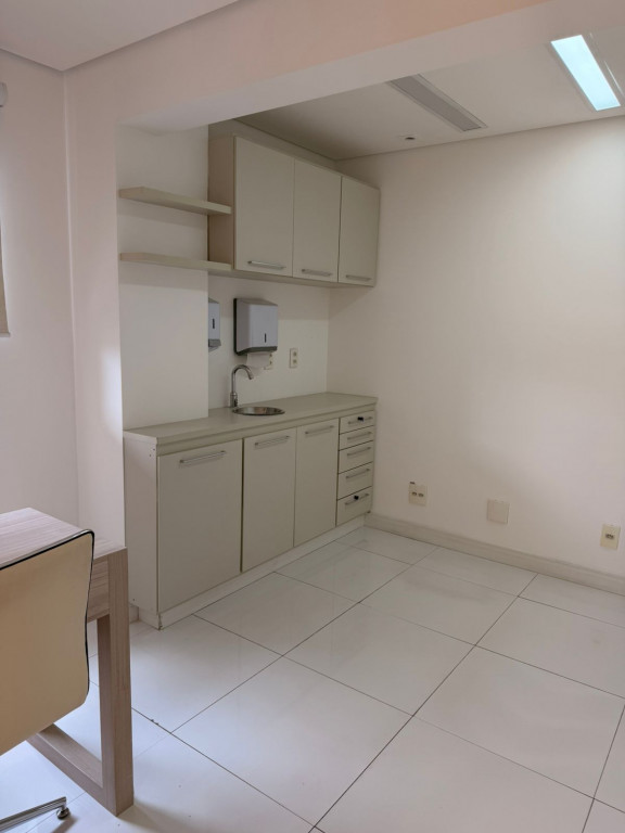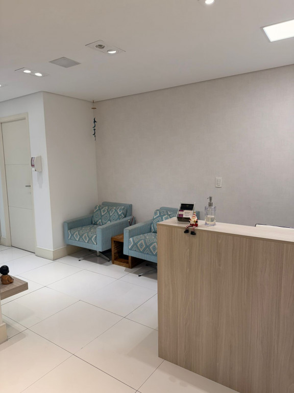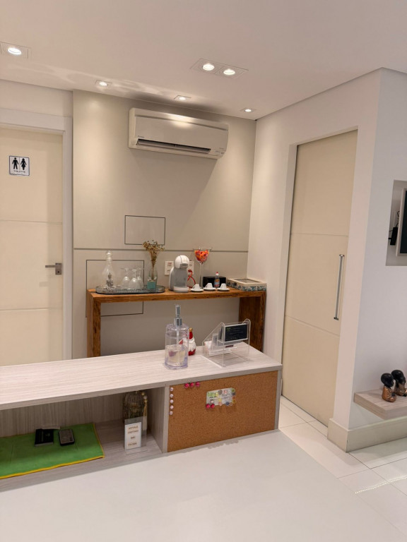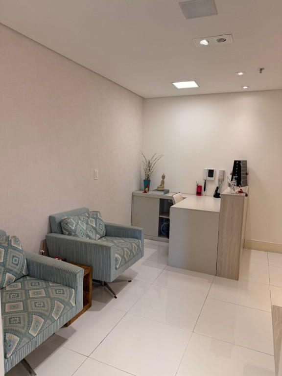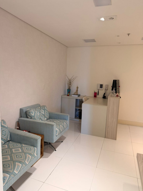 Sala comercial em excelente estado, venda porteira fechada, piso porcelanato, com ar condicionado, armários planejados, copa, espaço amplo, com recepção, e lavabo.