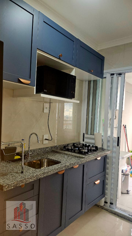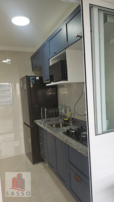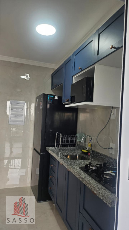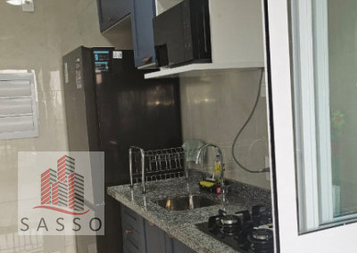 São 48 metros quadrados de área útil, com 2 dormitórios, banheiro, sala integrada, varanda, cozinha, repleto de móveis planejados, micro-ondas, e geladeira, apartamento nunca habitado.