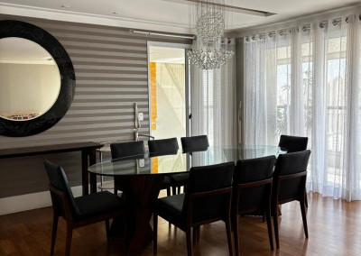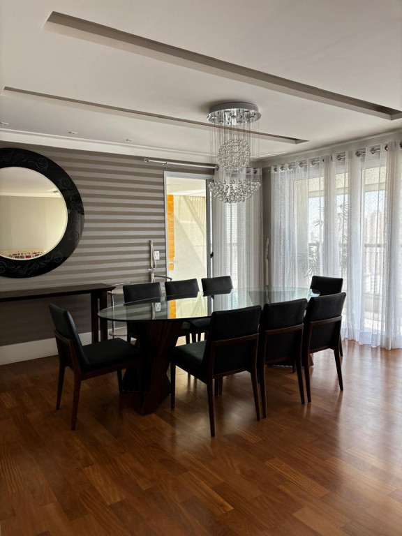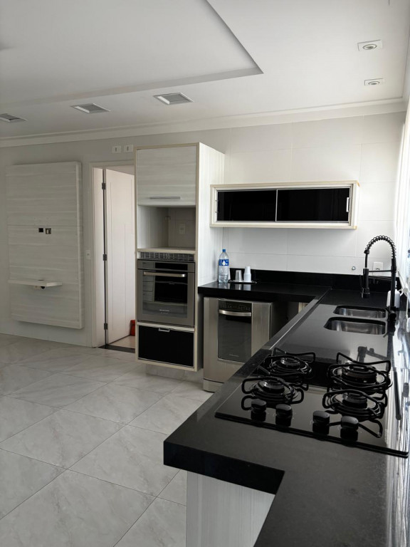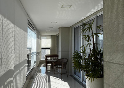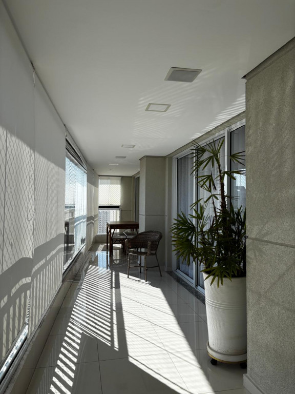 São 234 M² de área útil, com 3 quartos sendo os 3 suítes, 5 banheiros, sala 2 ambientes, varanda integrada, cozinha, área de serviço, e 4 vagas de garagem.