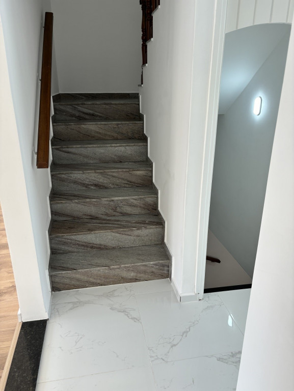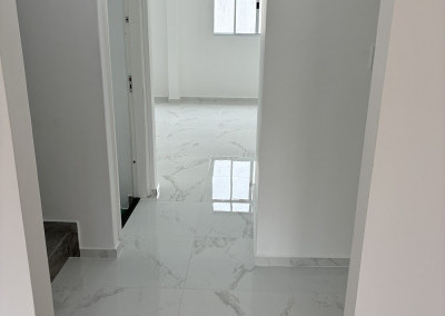 São 120 M² de terreno, com 180 M² de área construída, sendo 5,35 metros de frente X 22,42 metros de fundos, com 4 quartos, 4 banheiros, 1 suíte, sala para 3 ambientes, cozinha, área de serviço, e 3 vagas de garagem.