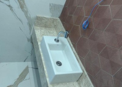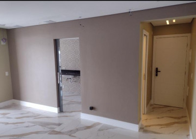 Armários embutidos de ótima marcenaria, portas de correr em todos os ambientes para otimizar espaços, Cozinha equipada com móveis planejados e fogão cooktop, projeto de som e iluminação automatizados . Revestimentos das paredes cozinha e banheiros em porcelanato fino . Cubas dos banheiros em pedra de excelente qualidade.