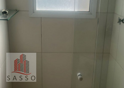 Apartamento com box de vidro, armários de cozinha, e armários dos banheiros são planejados, balcão das pias em granito.
