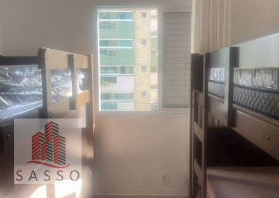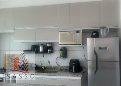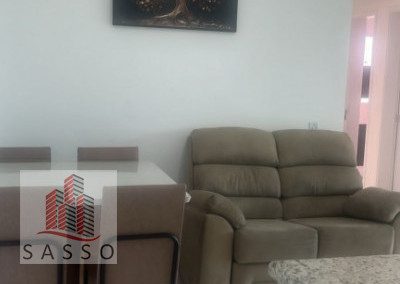 São 63 M² de área útil, com 2 quartos sendo 1 deles suíte, 2 banheiros, sala 2 ambientes, varanda, cozinha, área de serviço, e 1 vaga de garagem.