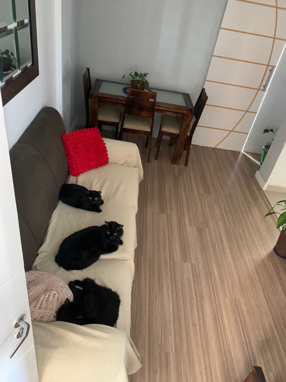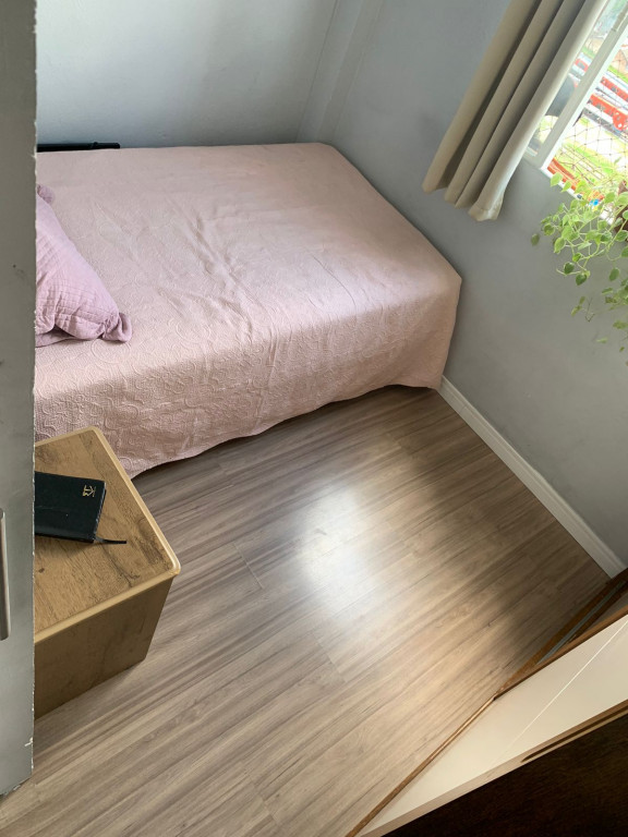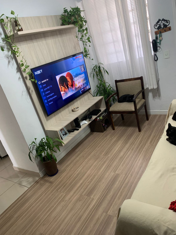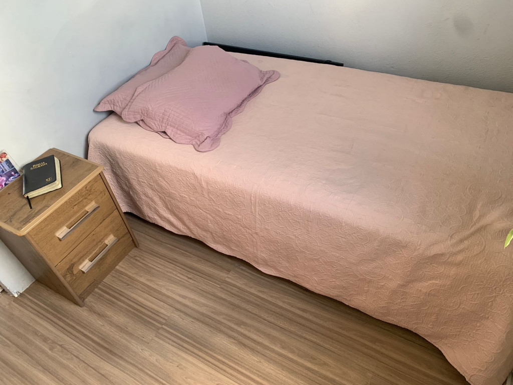 Apartamento semi mobiliado, e repleto de moveis planejados, mesa com 4 cadeiras, geladeira, fogão, 2 camas, painel com televisão, armários na cozinha, todo reformado, piso novo.