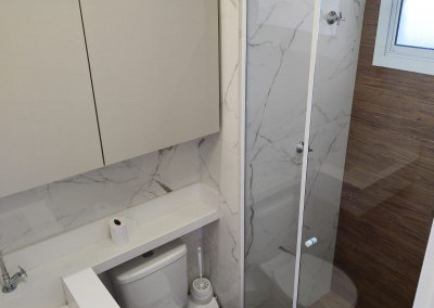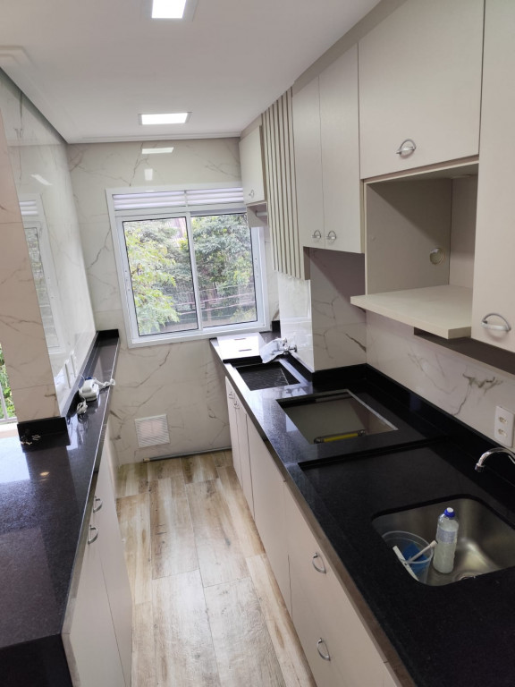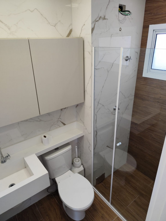 Apartamento novo com planejados na cozinha, wc, vaga livre e fixa, vista livre, ventilador de teto, box de vidro, piso porcelanato, vista de terceiro andar.