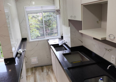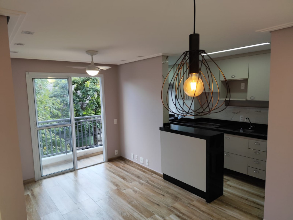 São 45 M² de área útil, com 2 quartos, 1 banheiro, sala 2 ambientes, cozinha, área de serviço, varanda, e vaga para 1 carro.