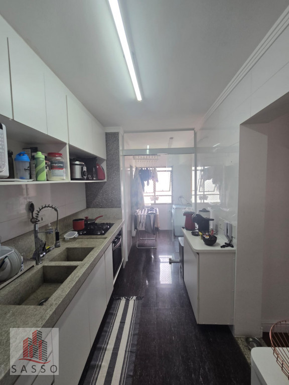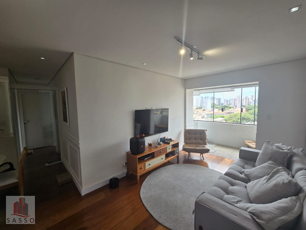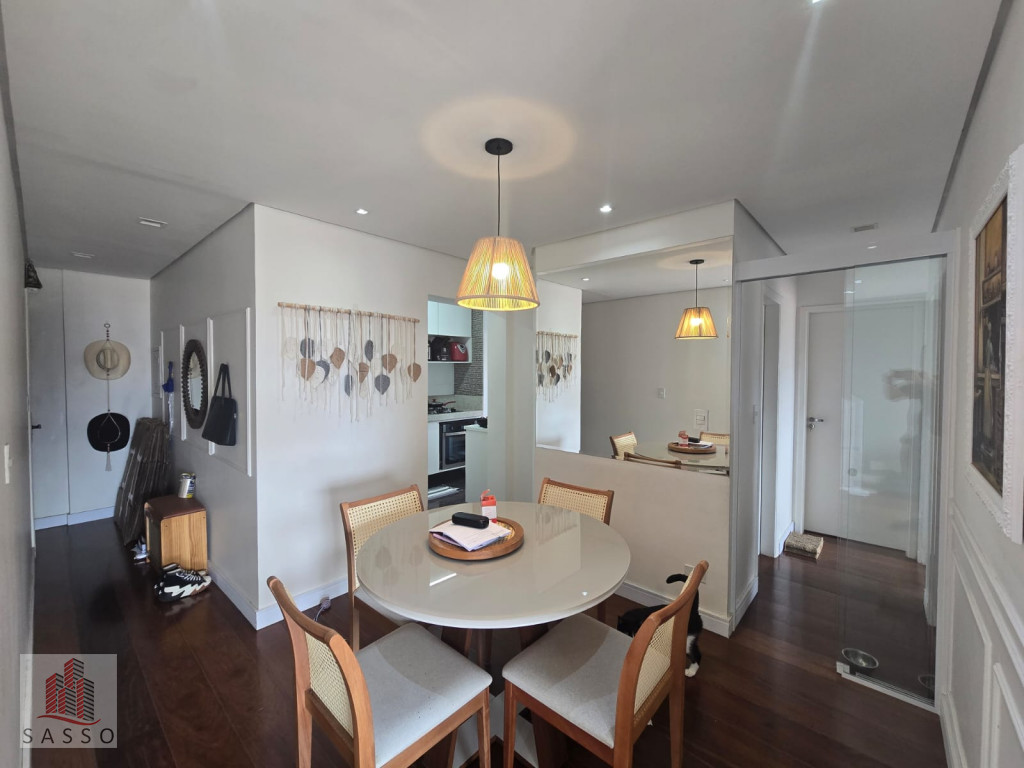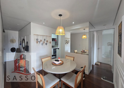 Sacada envidraçada, sala com 2 ambientes, cozinha com planejados, piso porcelanato, 3 dormitórios, 2 banheiros, lavanderia e 1 vaga.