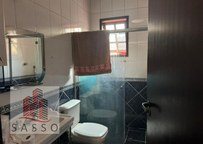 São 120 M² de terreno, com 200 M² de área construída, sendo 5 metros de frente X 24 de fundos, com 2 quartos, 2 banheiros, cozinha, área de serviço, varanda, banheiro com box de vidro, 2 vagas de garagem, e churrasqueira.