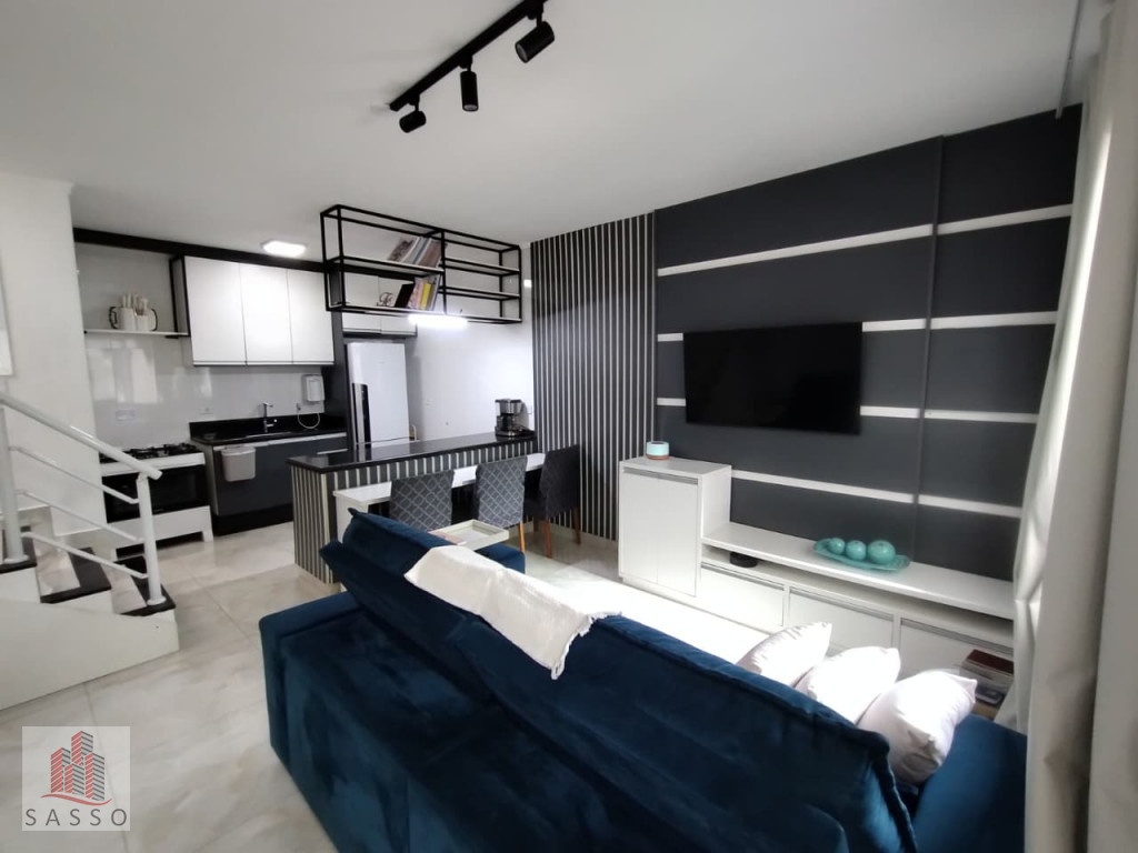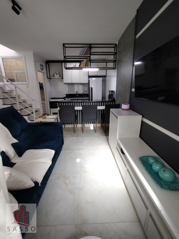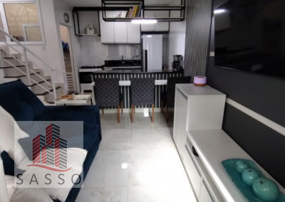São 65 M² de terreno, com 68M² de área construída, sendo 5,50 metros de frente X 11,80 metros de fundos, com 2 quartos, 2 banheiros, sala 2 ambientes, cozinha, área de serviço, e vaga para 2 carros, sobrado novo!! cozinha com armários planejados, tudo novo!! área com churrasqueira, e ar condicionado.