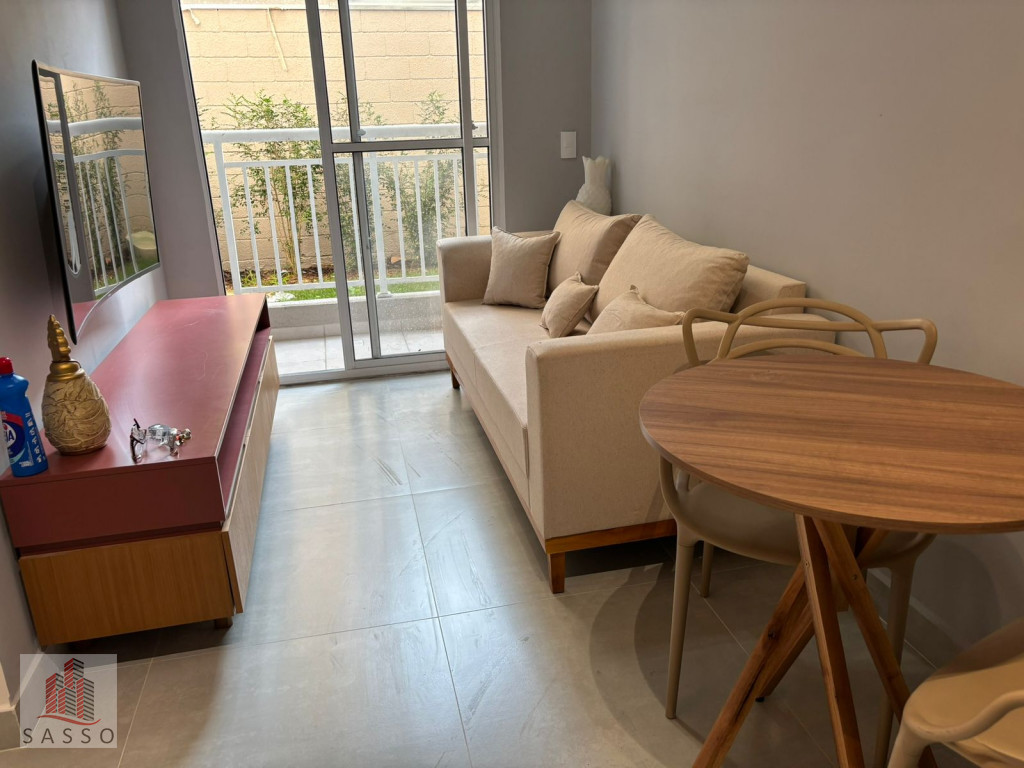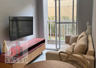 São 27 M² de área útil, com 1 quarto, 1 banheiro, sala 2 ambientes, sacada, cozinha, e área de serviço.