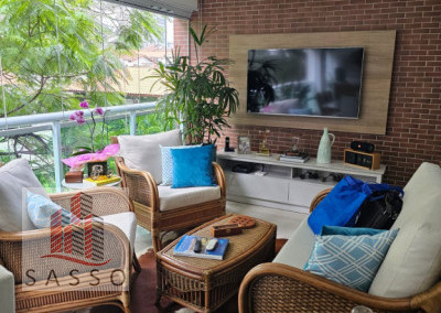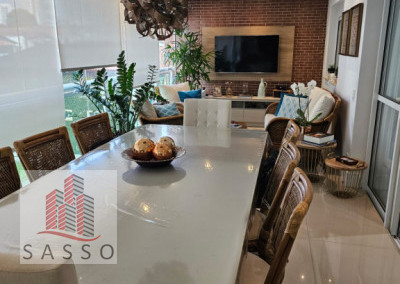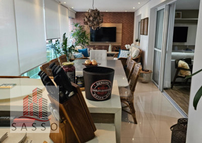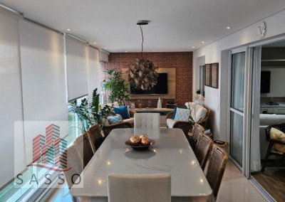 São 168 M² de área útil, com 3 quartos, 5 banheiros, 3 suítes, sala 2 ambientes, varanda, cozinha, área de serviço, 3 vagas de garagem, APARTAMENTO PORTEIRA FECHADA, vendido com tudo que tem dentro, repleto de planejados, iluminação planejada, e revestimentos de ótima qualidade, com varanda envidraçada.