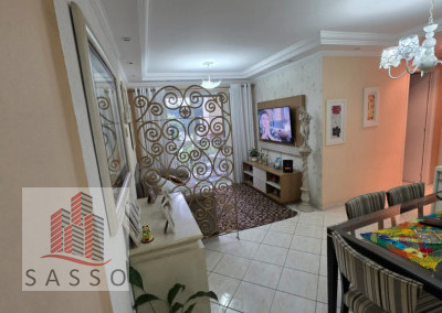 São 62 M² de área útil, com 3 quartos, 1 banheiro, sala 2 ambientes, cozinha, área de serviço, varanda, e 1 vaga de garagem.