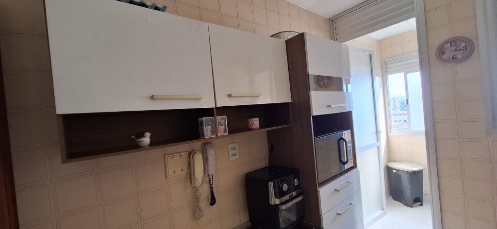 Excelente Apartamento, com 3 dormitórios, 2 Banheiros, Sala em 2 Ambientes, Cozinha completa, quarto de serviço, Apartamento lotado de armários, Piso granito com laminado, 1 vaga de garagem e uma Vista Livre.