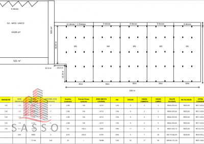 Cabine primaria 65 kva ( com possibilidade de Ampliação ), Sistema de combate a Incêndio J4, Pé direito Livre 9 metros, 5 docas pra carga e descarga , Vestiários administrativo 540m2.