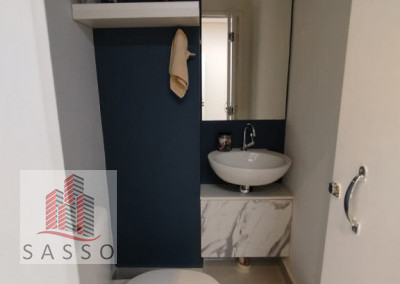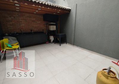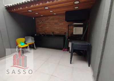 São 120 metros quadrados com 5 sala, cozinha,5 banheiros, lavanderia e 1 vaga de garagem.