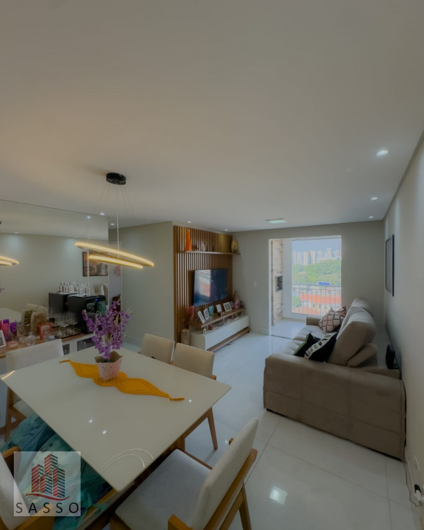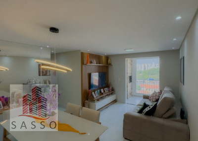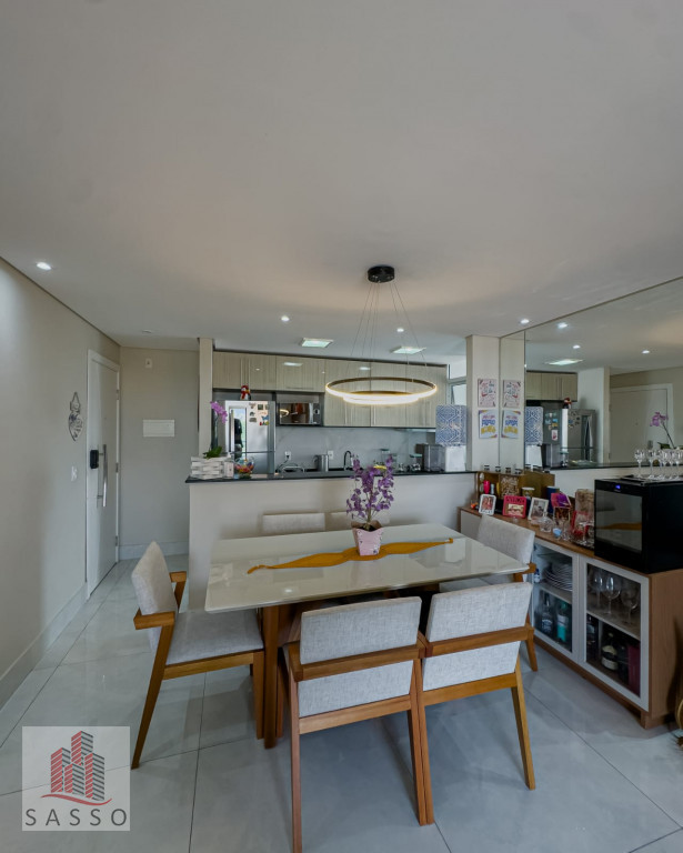 São 77m² com 3 dormitórios sendo 1 suíte, sala para 2 ambientes, sacada envidraçada, cozinha, banheiro social, área de serviço e 1 vaga de garagem.
