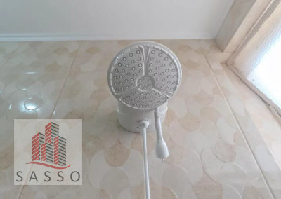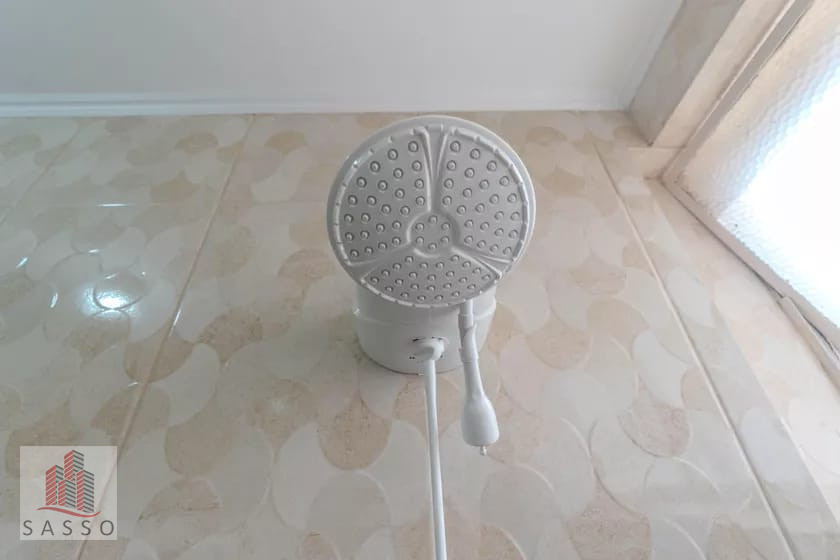 Apartamento com gás encanado e banheiros com boxes de vidro.