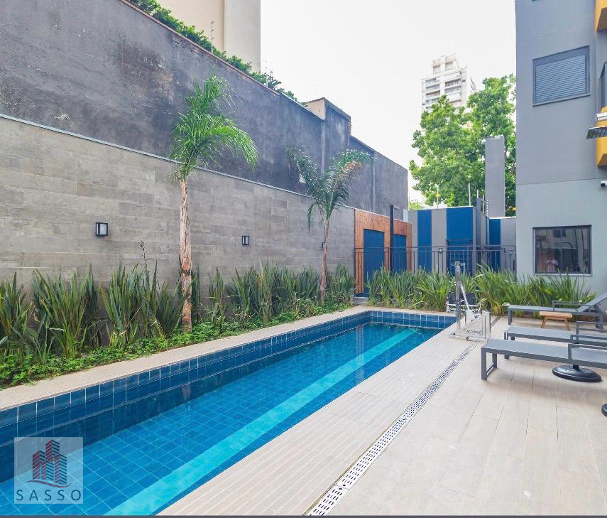 São 36 M² de área útil, com 1 quarto, 1 banheiro, sala 2 ambientes, varanda, cozinha, e área de serviço.