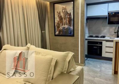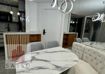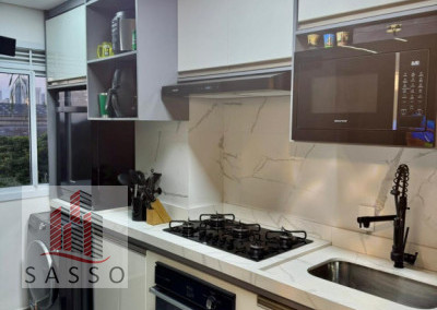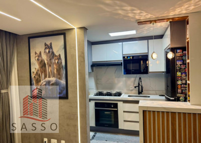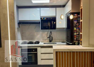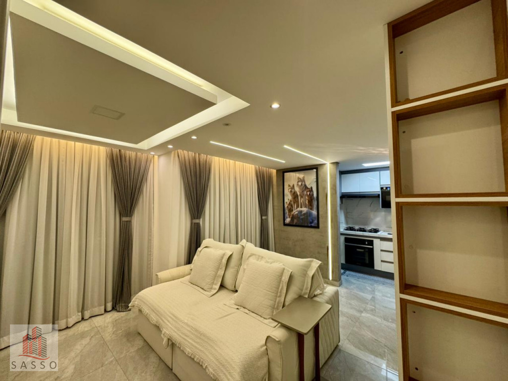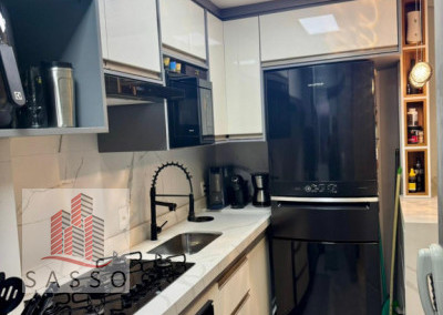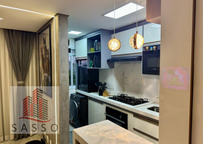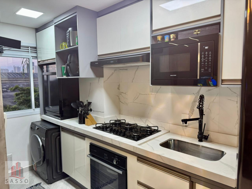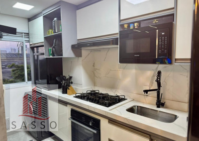 Excelente apartamento pronto para morar, a venda com porteira fechada. Sem detalhes com marcenaria de primeira linha, piso em porcelanato esmaltado, teto com acabamento, luzes de led, espaço aberta, varanda, cozinha planejada estilo americano, fogão cooktop, balcão em pedra silestone, mesa da sala em granito, canto alemão, lavanderia, dormitórios com armários e banheiro com box de vidro e pia em pedra silestone esculpida e gabinete