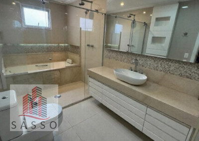 São 242 metros quadrados com 4 quartos sendo 3 suítes, sala para 2 ambientes, cozinha, área de serviço, banheiro social e 4 vagas de garagem.