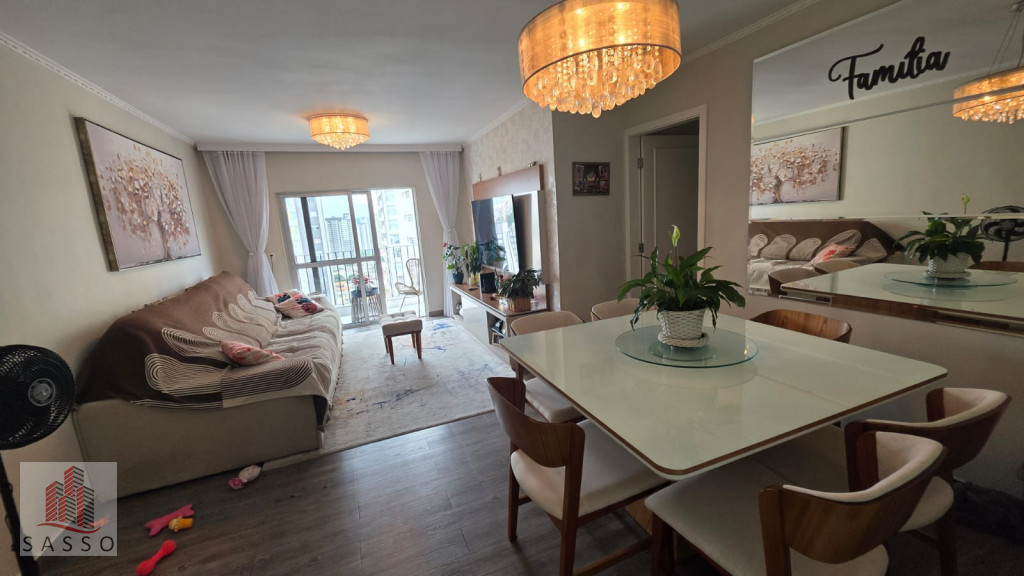 Apartamento com 3 quartos sendo 1 suíte, sala para 2 ambientes, sacada, cozinha, banheiro com box e pia com gabinete e ventilação natural e lavanderia.