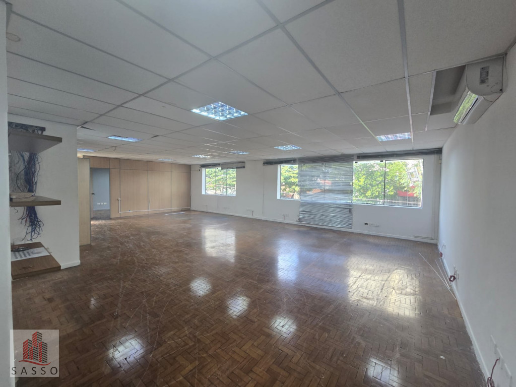 Prédio comercial com 3 pavimentos; térreo com 2 salões, 4 vagas de garagem, 1º pavimento com 3 salas, cozinha, 2 banheiros, 2º pavimento com 2 salas pequenas e 1 grande, 2 banheiros, porta elétrica e entrada de pedestres.