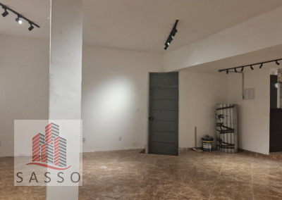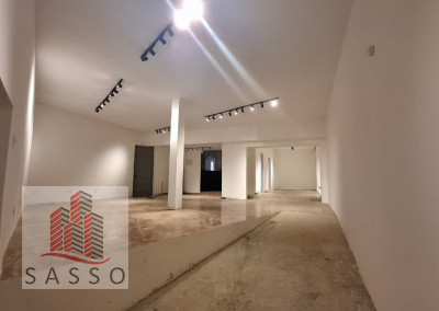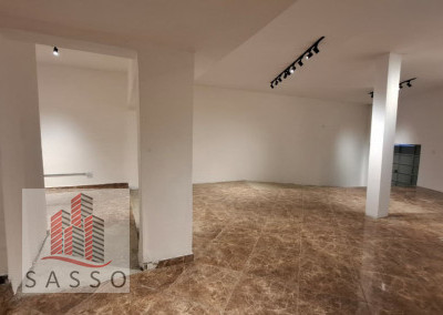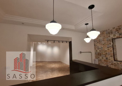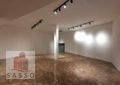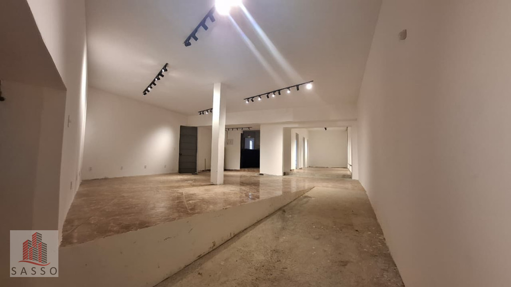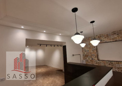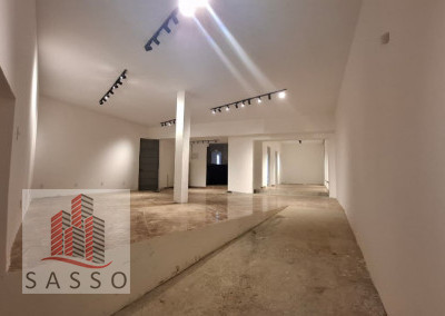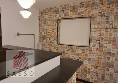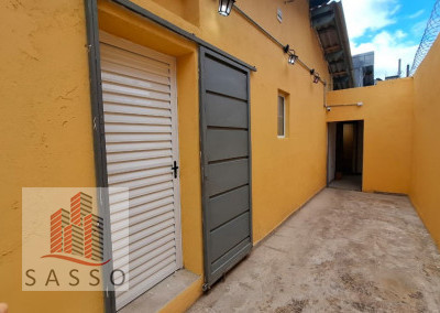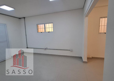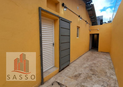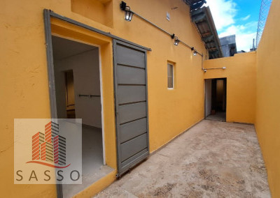 São 230 metros quadrados com 4 salas, 2 banheiros, copa e cozinha, quintal.