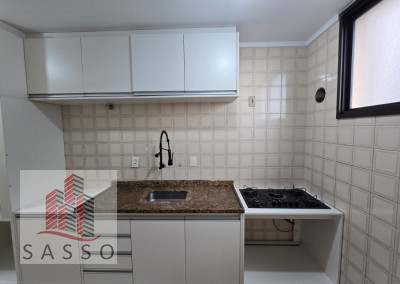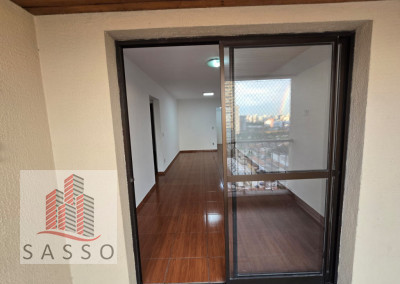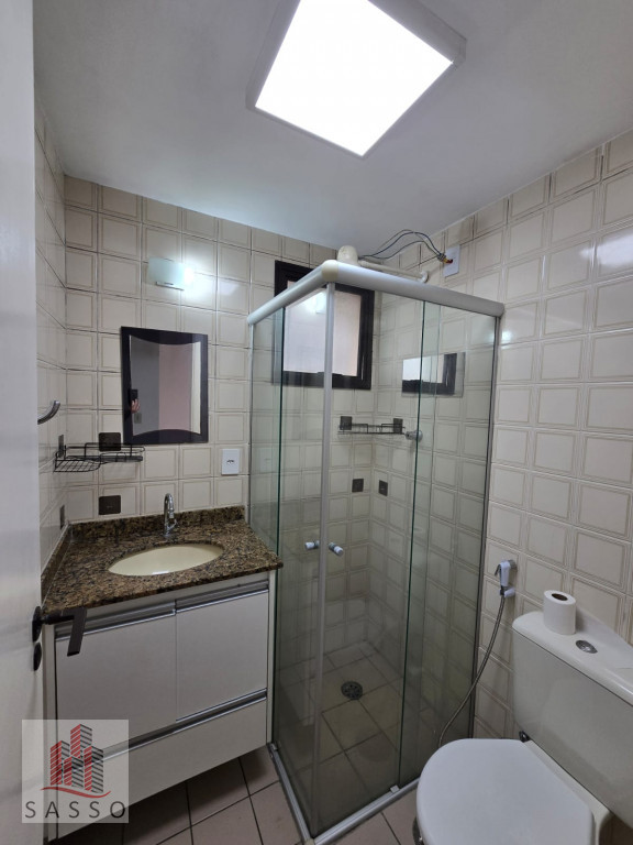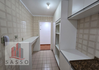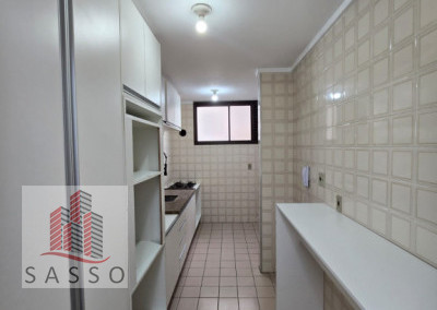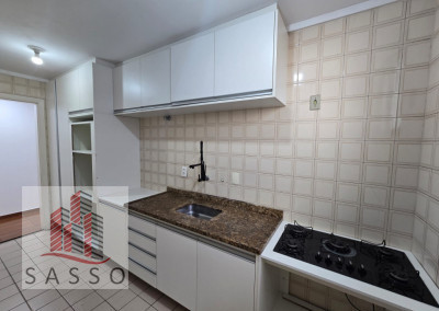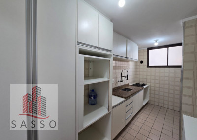 Apartamento com sacada, sala ampla, cozinha com planejados e fogão cooktop, 2 quartos , 1 deles com armários, banheiro com box e pia com gabinete, lavanderia e 1 vaga. Condomínio com piscina, churrasqueira , salão de festas, minimercado e portaria 24h