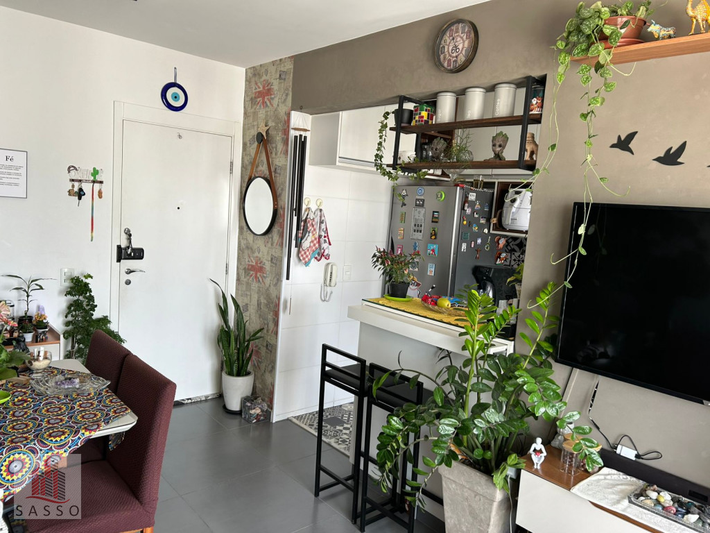 São 57 m² com 2 quartos, sala 2 ambientes, sacada, cozinha, área de serviço 1 vaga de garagem.