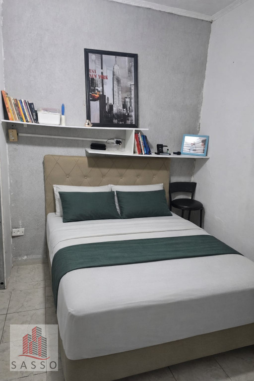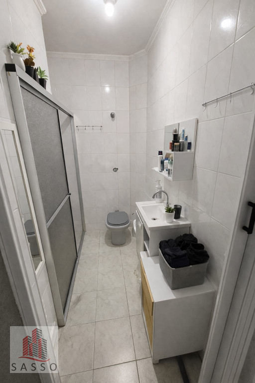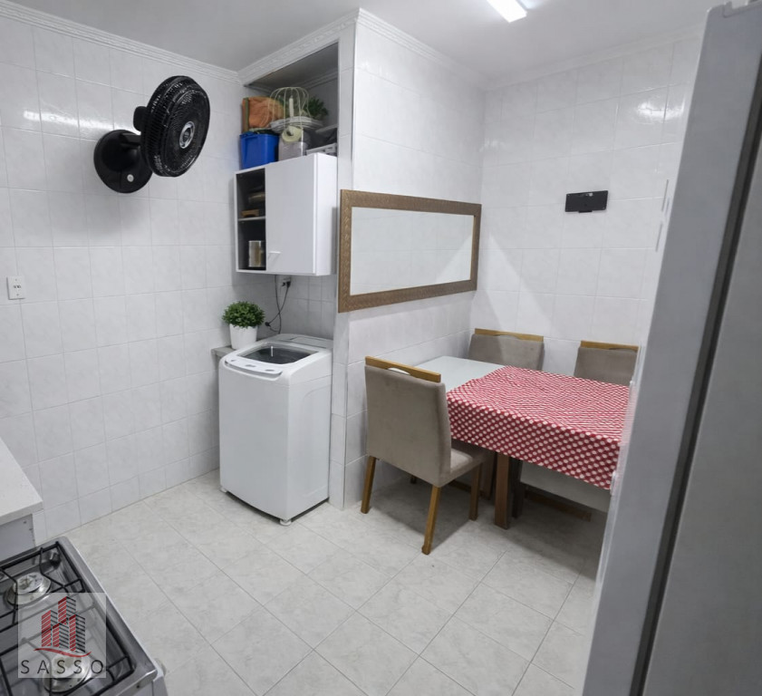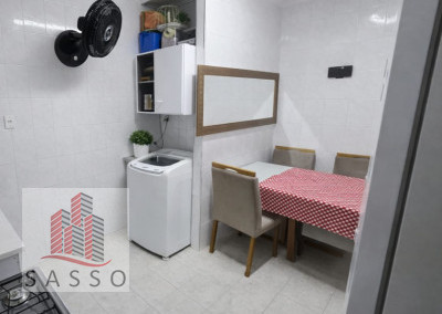 São 40 m² com 1 quarto, 1 banheiro, cozinha, sala, área de serviço e 1vaga na garagem.