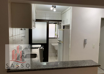 São 55 metros quadrados com 2 quartos sendo 1 suíte, sala para 2 ambientes, cozinha, área de serviço, banheiro e 1 vaga de garagem.
