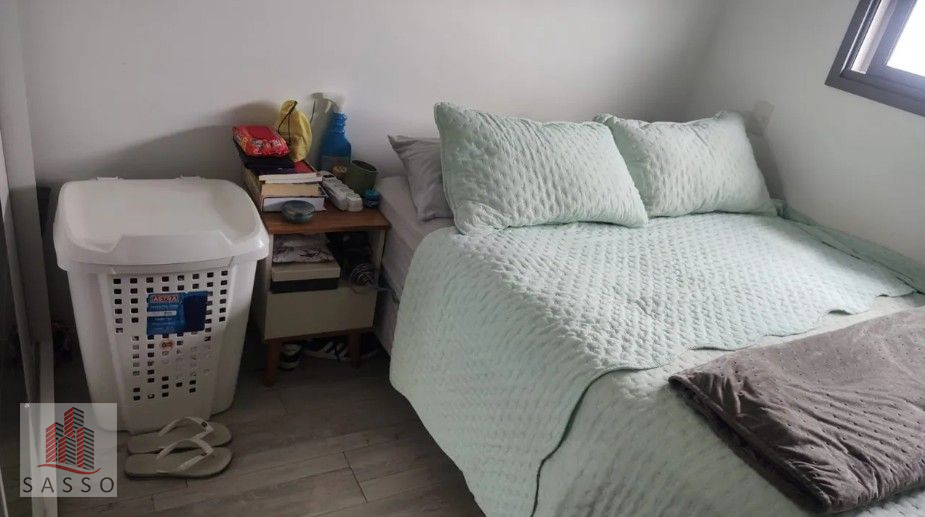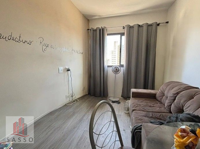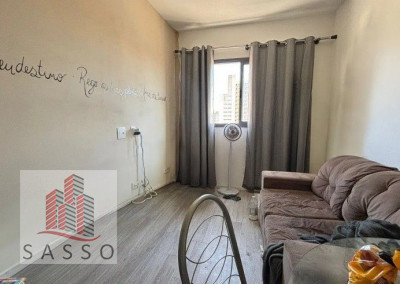 São 26 metros quadrados com 1 quarto, sala, cozinha área de serviço e 1 vaga de garagem.