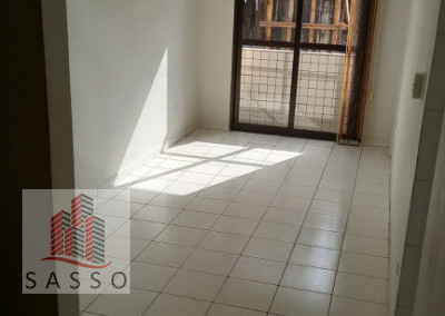 Ótimo apartamento, com sala espaçosa, piso frio, varanda aconchegante. Cozinha com armários, pia com água quente. Área de serviço. Dormitório com ar condicionado. Banheiro com Box.