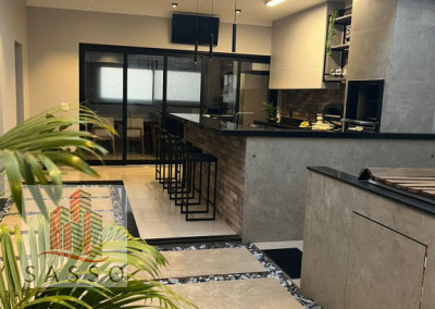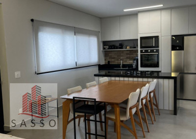 São 220 metros quadrados com 3 quartos 1 sendo suíte, sala para 2 ambientes, cozinha, área de serviço, banheiro social e 2 vagas de garagem.