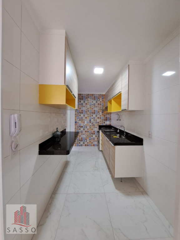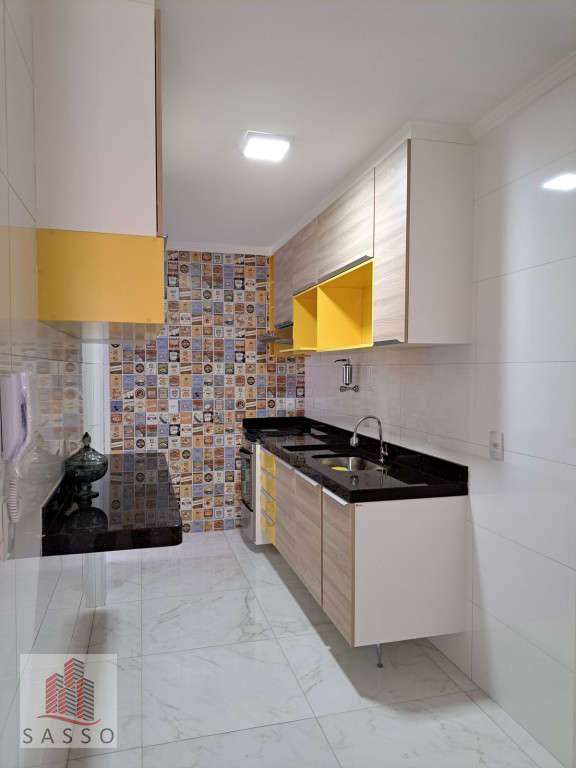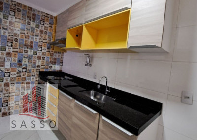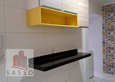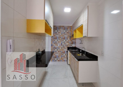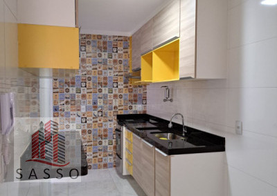 São 49 metros quadrados com 2 quartos sendo suíte, sala, cozinha, área de serviço, banheiro e área externa.