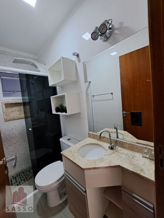 Casa de condomínio toda reformada, repleta de móveis planejado, com pouco tempo de uso, planta bem distribuída, lavanderia com máquina de lavar, banheiro com box de vidro e ventilação natural.